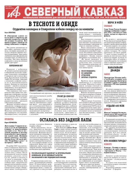 В общежитии одного из колледжей Ставрополя несколько несовершеннолетних избили 18-летнюю студентку. СКР возбудил уголовное дело о хулиганстве, совершённом группой лиц. После проверки Минобра из колледжа отчислили пятерых студентов.2 полоса