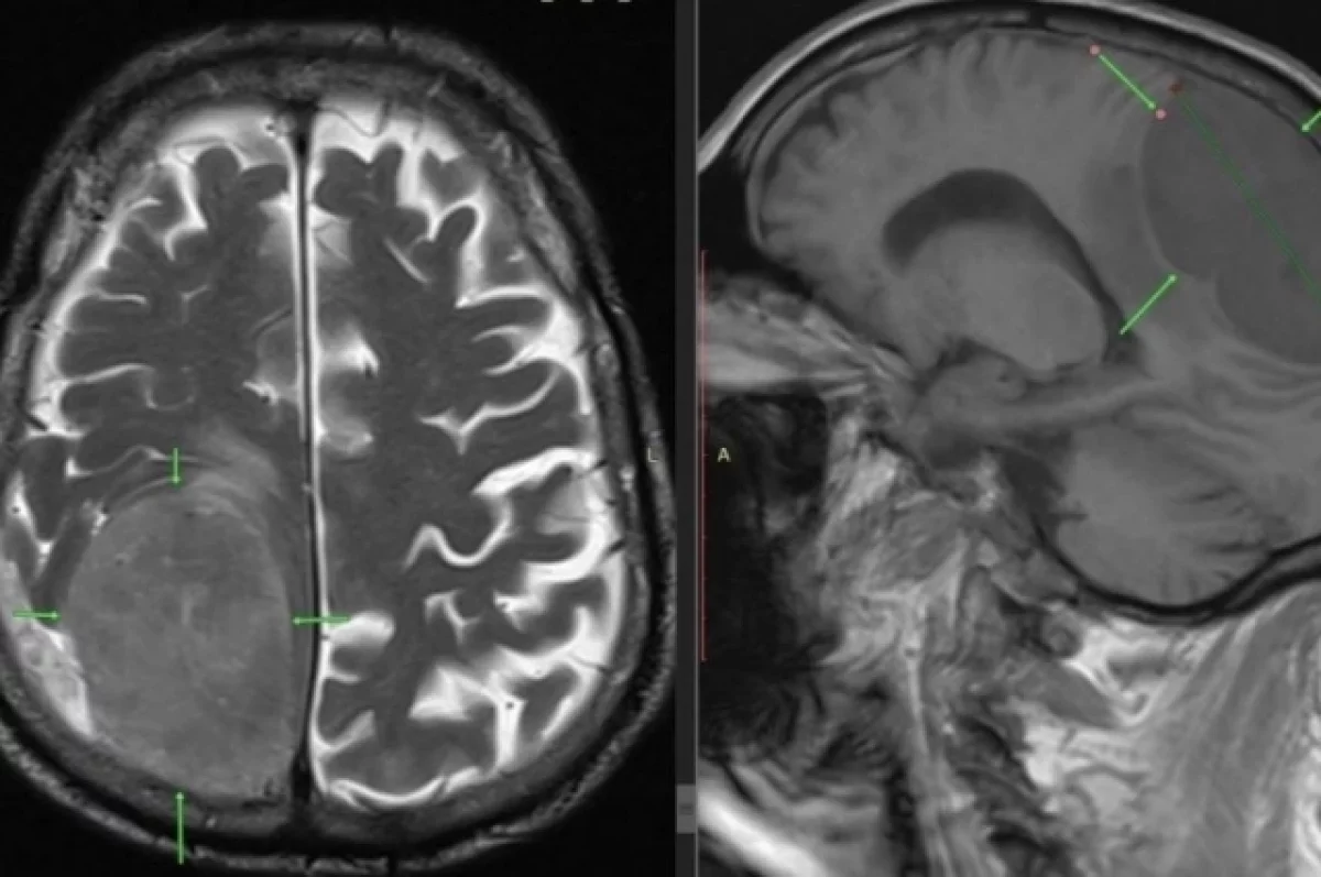 Пациента привезли в больницу с серьезной проблемой: он потерял возможность двигать левой ногой и левой половиной тела. Сначала врачи заподозрили инсульт, но экстренное обследование показало другую причину. Оказалось, что в правой части мозга у пациента росла огромная опухоль размером 8 на 7 сантиметров, которую медики сравнили с лимоном. Именно это новообразование давило на центры, отвечающие за движения левой стороны тела.