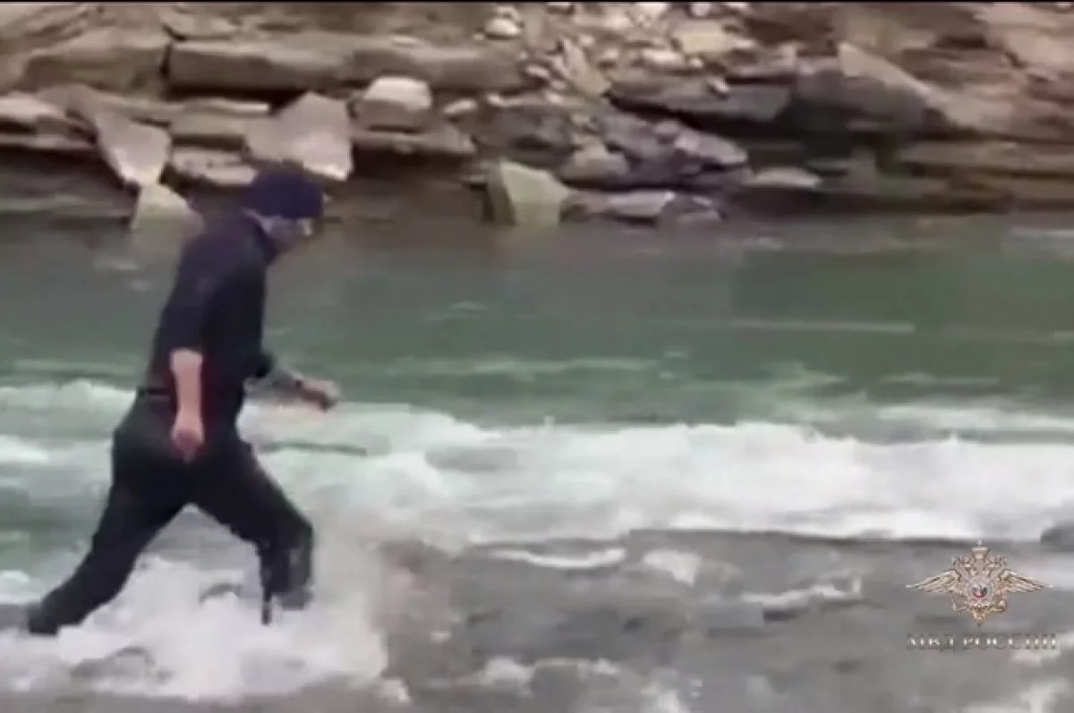 Участковые хотели остановить нарушителя. Водитель попытался скрыться. Началась погоня. В результате фигурант бросил машину и бросился в горную реку, чтобы перебежать её по камням.