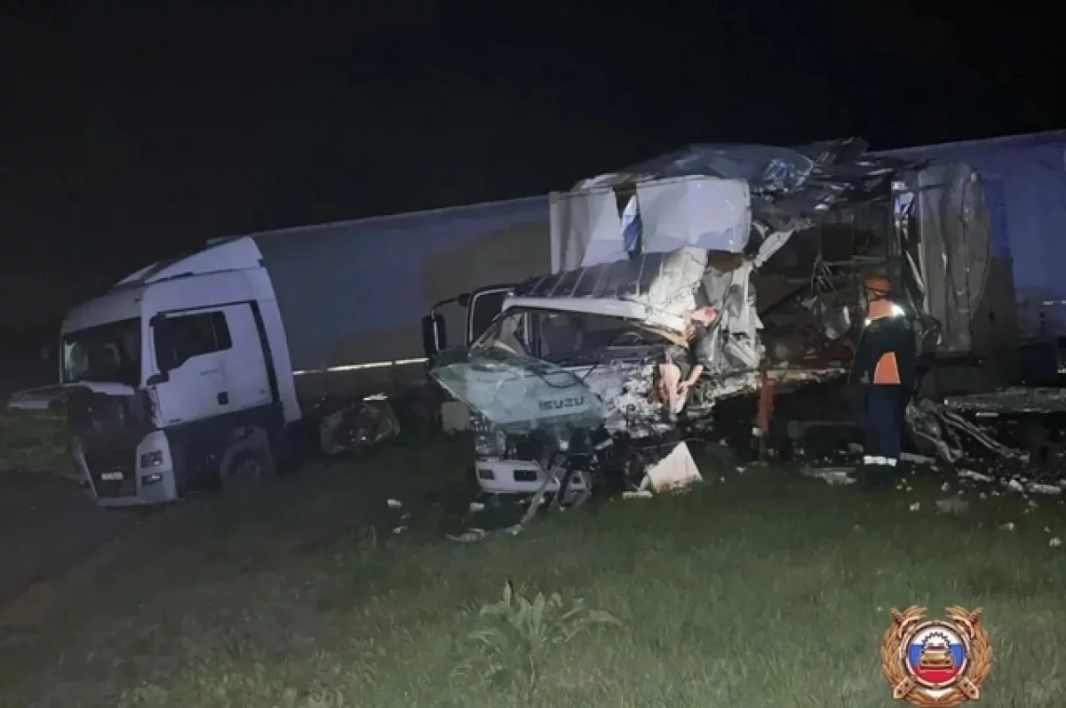 Три грузовика столкнулись ночью на встречке на Ставрополье, погиб водитель