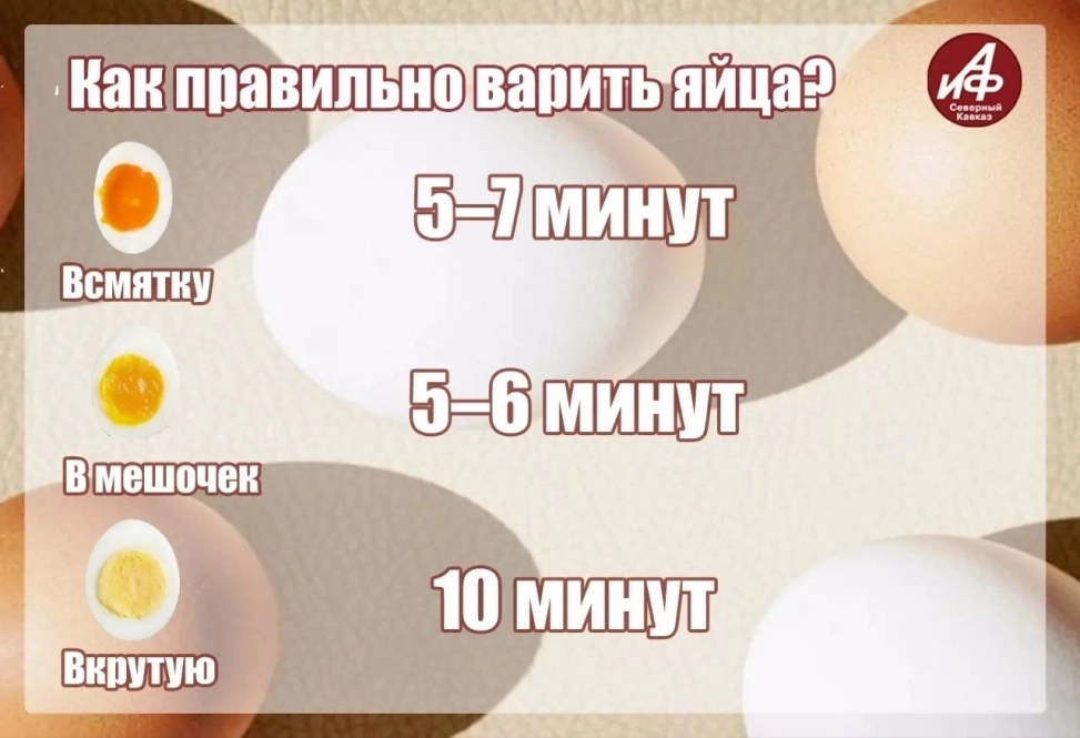 Специалисты Роспотребнадзора советуют перед варкой тщательно промыть яйца с мылом, затем положить в кипящую воду. Чтобы сварить яйца вкрутую, нужно держать их в кипящей воде 10 минут. Яйца всмятку готовятся чуть меньше — не более 7 минут.
