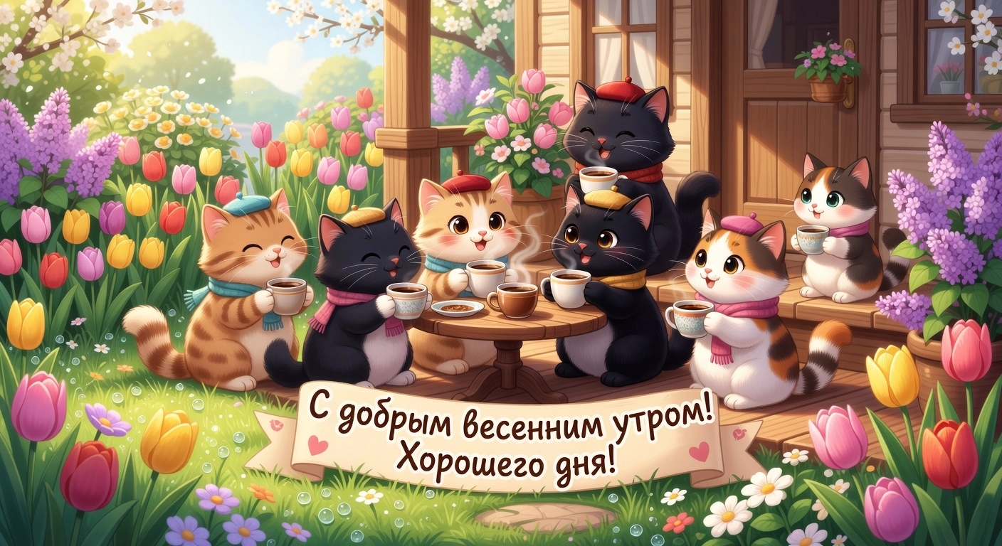 Все открытки можно скачать бесплатно. Выбирайте ту, что соответствует вашему настроению, и дарите хорошее начало дня тем, кто вам дорог. Отправляйте эти картинки близким в мессенджерах и социальных сетях.